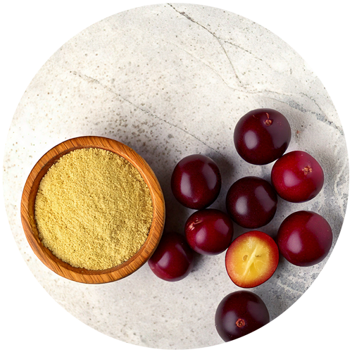 Tonus Le fruit du camu-camu, Myrciaria dubia, riche en vitamine C et en polyphénols, soutient les fonctions immunitaires, contribue à la protection cellulaire et favorise l’équilibre métabolique.